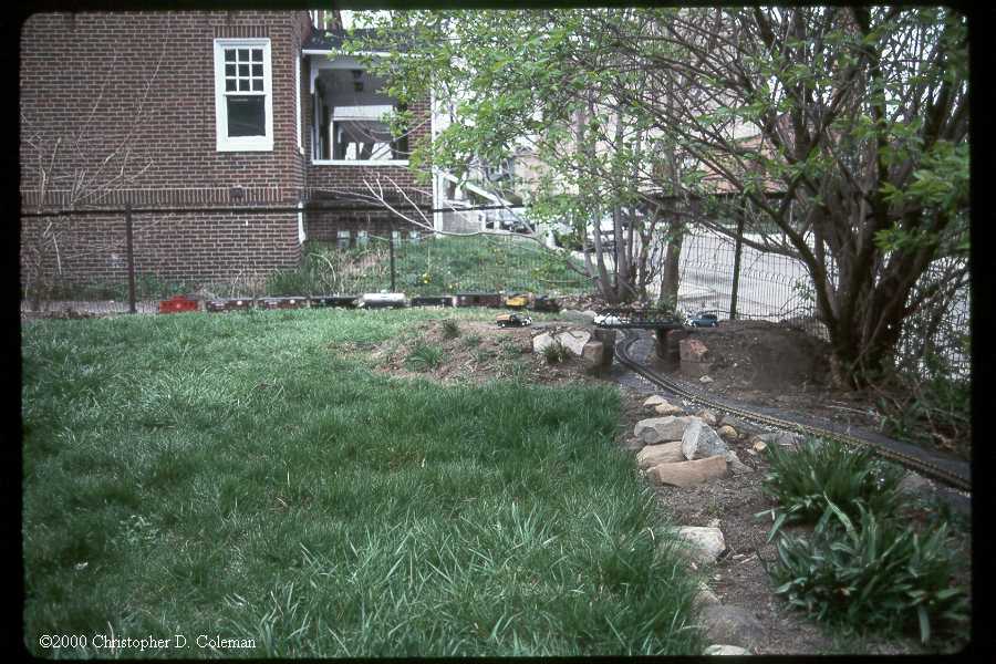 A sight line runs a loop through the backyard to test the track