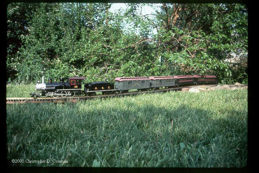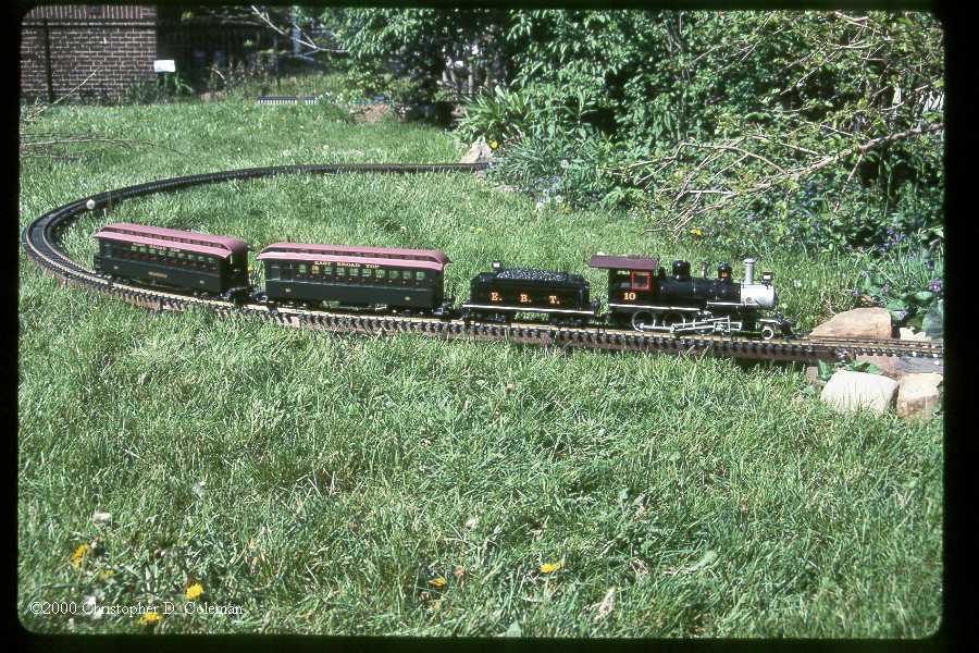 The Bachmann EBT ten wheeler and coaches winds across the Coles Curve