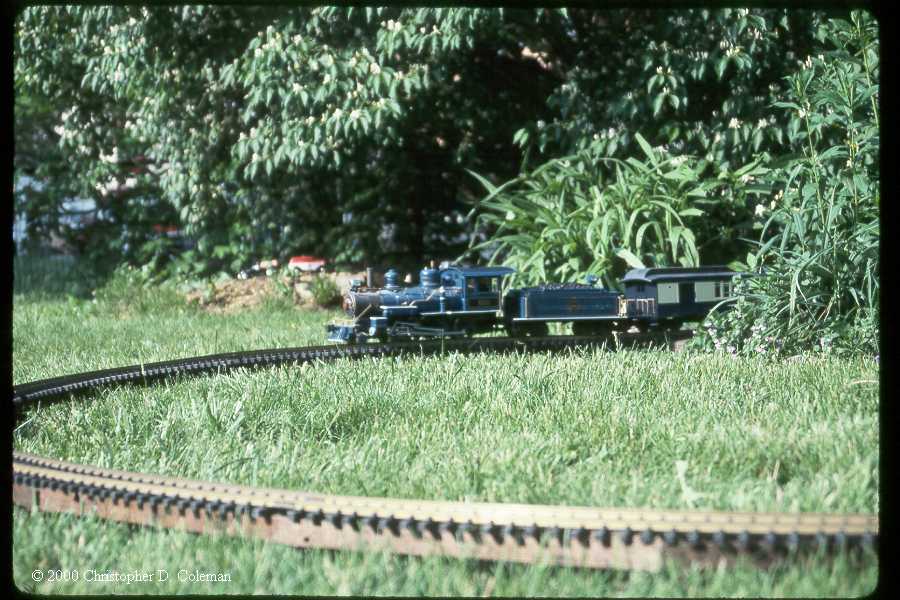 Looking across Coles Curve towards Fairview, the Bachmann CNJ ten wheeler